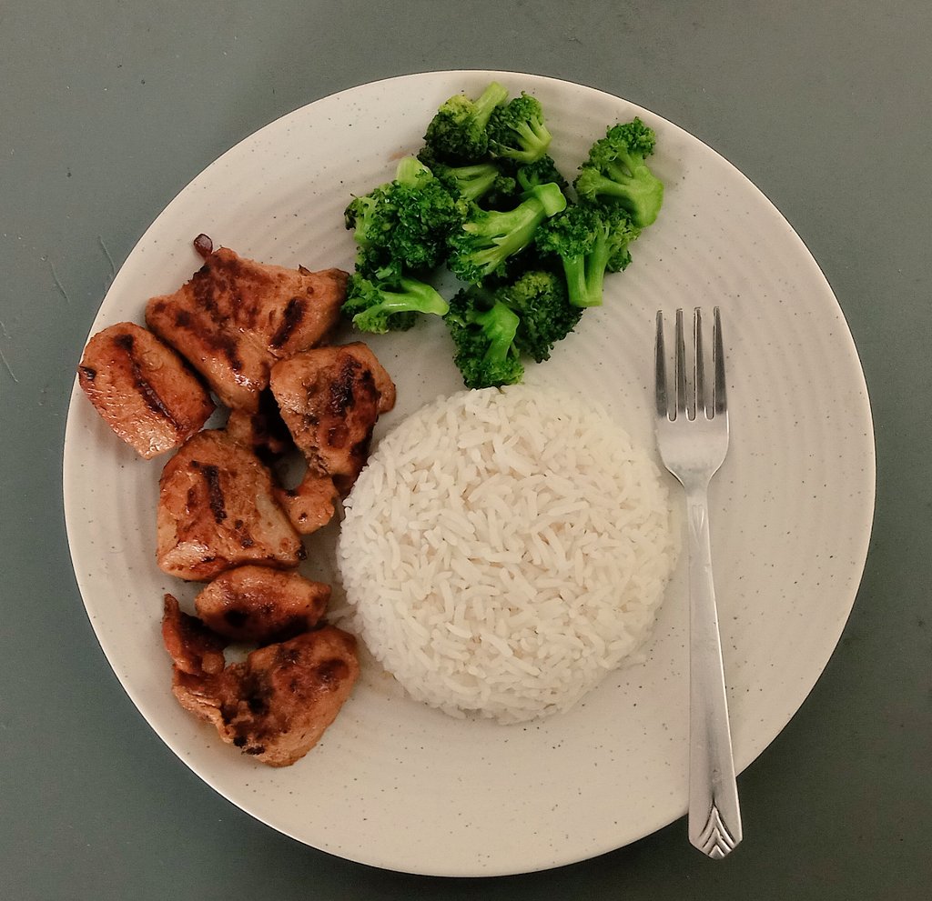 Pan fried chicken and brocolli with rice