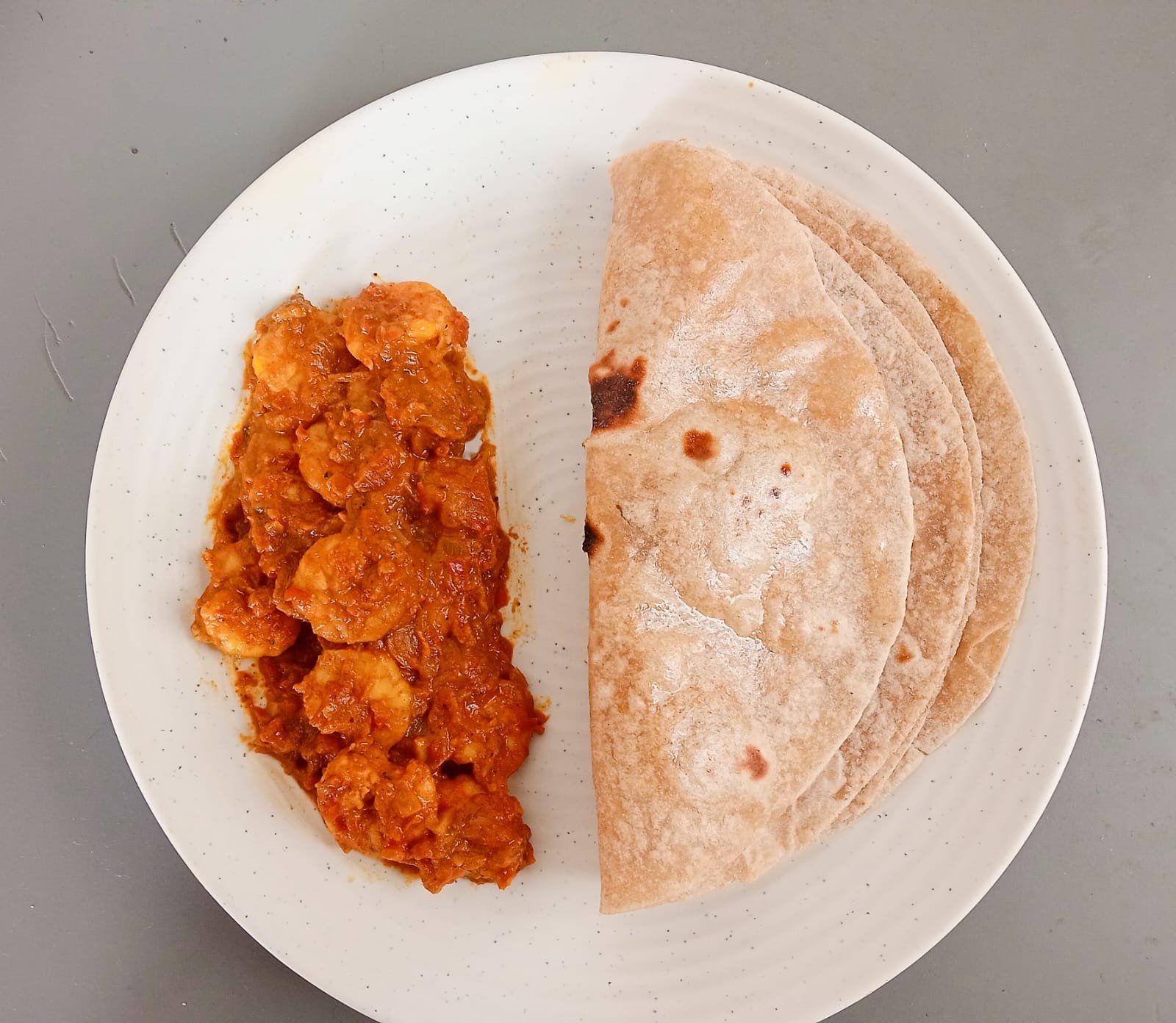 Prawn roast with rotis